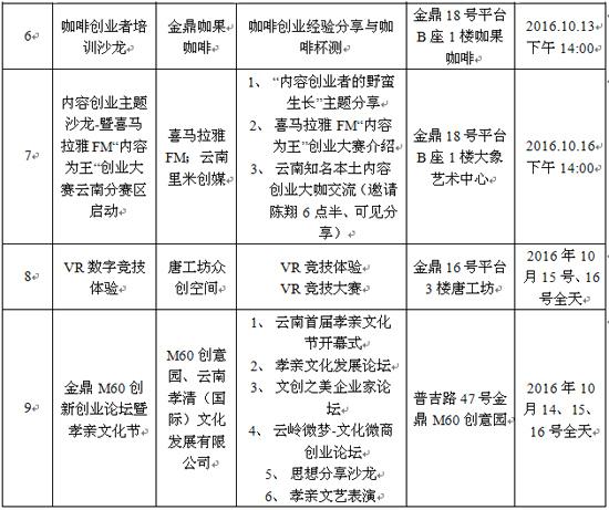 线上方面,内容创业主题沙龙——暨喜马拉雅FM“内容为王”创业大赛云南分赛区正在互动吧接受报名,16日下午2点,里米创媒CEO沈攀、陈翔六点半创始人陈翔、可见创始人陈浚明等创业大咖将到场分享对行业的洞察和经验。而VR数字竞技体验、咖啡创业经验分享、金鼎M60创新创业论坛暨孝亲文化节等活动将在接下来一周内陆续开展。
