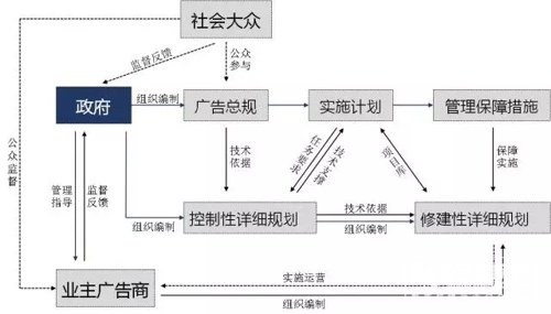 第三是建立监管机制。建立全过程的监管机制,包括对于规划实施各个流程的监管、评价、反馈机制;包括对实施过程中各个实施主体,如政府、规划设计单位、广告商、业主等监管、评价、反馈机制。通过监管机制不断完善方案编制、完善实施程序、完善管理体制机制。