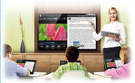 交互式平板(又称晶触摸白板)囊括了投影机、投影幕、音响、控制器、电脑的多项功能,造就了后期的维护简单操作。同时,也降低能耗的同时也减少了光污染,不受外界光线干扰,也不会像普通电子白板那样,遇到光线较暗看不清、或产生反光的情况,教师不必忍受刺眼的光照,学生不会看到黑色的阴影。