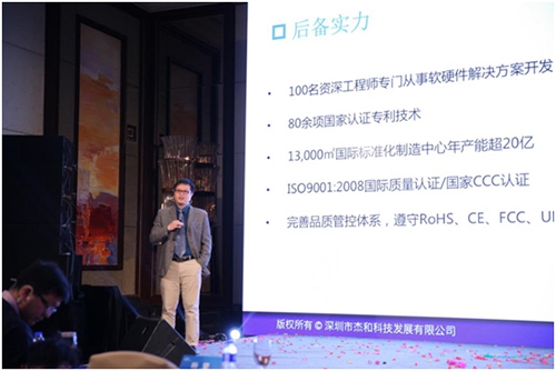 杰和科技销售总监杨坚对杰和Cherry Trail的产品及解决方案做了详细讲解。杨坚表示:杰和Cherry Trail系列产品是针对数字标牌行业而设计的。该系列产品,从芯片选择到规格配置上,充分考虑了国内数字标牌行业客户的真正需求。产品在保证超低功耗的同时,提供VGA+HDMI双接口,可实现同/异步显示,满足4K播放需求;同时,提供1*USB 3.0、3*USB 2.0、1*TF读卡器,应用扩展毫无压力。