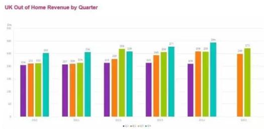 2010-2015年各季度英国户外广告市场营收状况