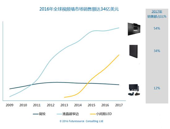 Futuresource Consulting发布了其第六版全球视频墙市场研究报告,其中最受关注的数据是“全球小间距LED屏市场,2015年销售金额6.78亿美元,这个数据基本与此前一直霸占视频墙高端市场的DLP拼接产品相当”。