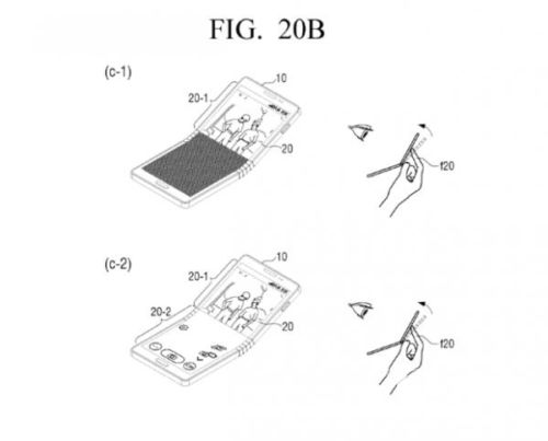 另一项专利展示了一款可以对着的显示面板,通过专利图可以看出应用的产品也是一款类似于手机的设备,弯折区域上下可以分开显示,目前尚不清楚这两项专利什么时候可以正式应用在手机上。