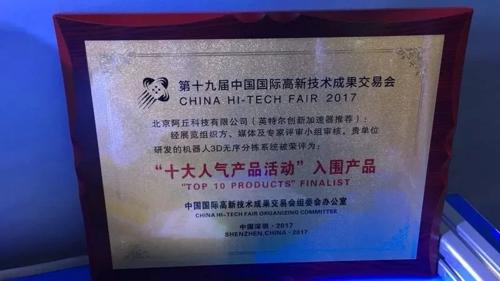 同样由英特尔创新加速器加速器推荐的晓曼商用机器人、机器人3D无序分拣系统还获得了“十大人气产品活动”入围产品称号!