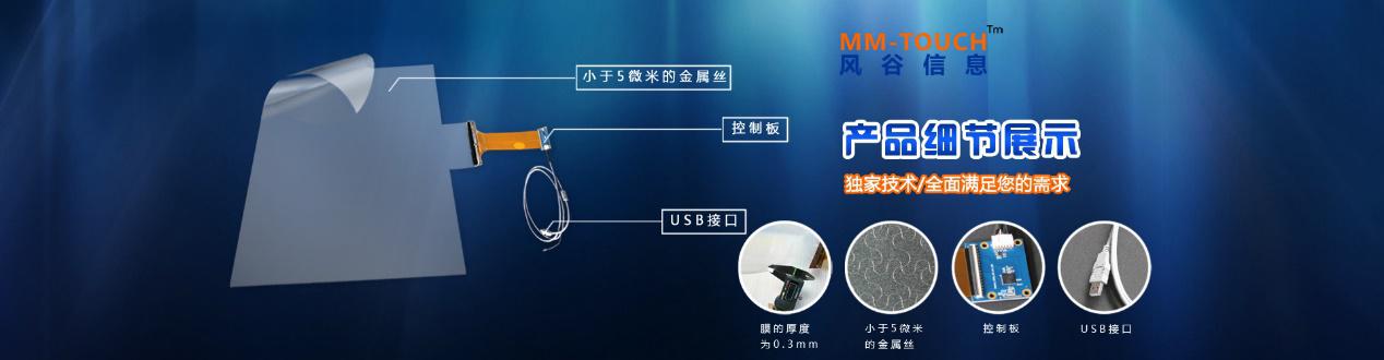 金属网格电容触摸膜是一款由海归团队的高科技公司深圳风谷信息科技有限公司针对商显行业设计研发生产出来的,此款产品特点:响应时间短、反应极速、防水系数高、能够全角度抗强光照射、透光率极强、抗干扰性极强、可穿透1~20mm厚玻璃、使用寿命长价格实惠已接近红外触摸的触摸膜。它能给带来你高清的视觉体验;同时给你完美的触控体验,反应极强的它,在你的指头轻轻触控下,会给你意外的惊喜。